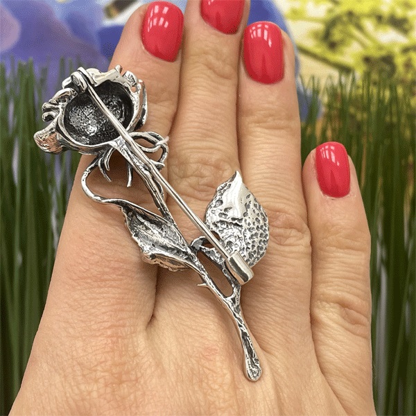 Серебряная брошь в виде розы - это подарок, который порадует каждую женщину. Брошь можно носить на разных видах одежды, что дополнит и украсит образ. Прекрасно подойдет в качестве подарка на День рождения, День воспитателя, День учителя, День медицинского работника.