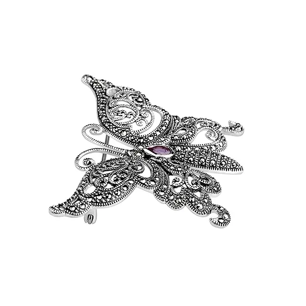 В центре - натуральный аметист 0,45 карата. Размах крыльев бабочки 5,5 см.