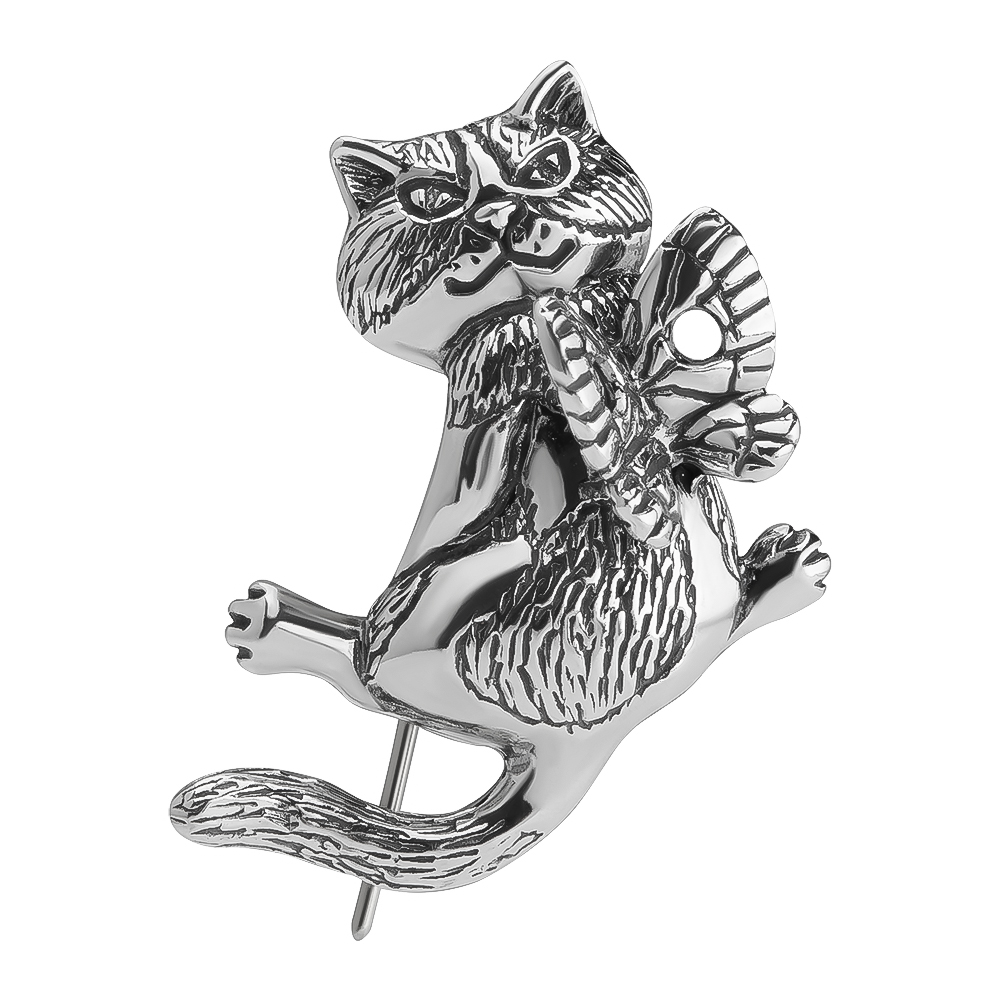 Ищете необычное украшение, которое станет ярким акцентом и отразит вашу индивидуальность? Представляем эксклюзивную серебряную брошь в виде кота с крыльями бабочки — удивительное сочетание природной грации и сказочной фантазии.