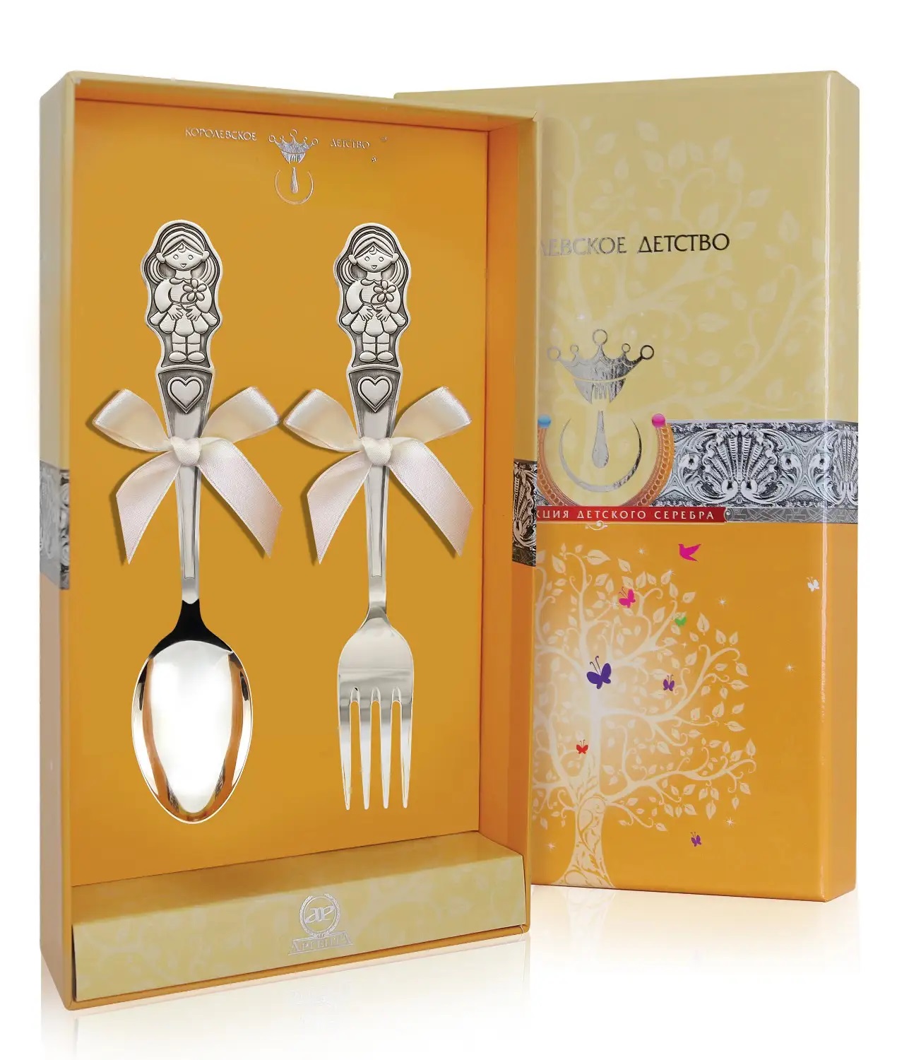 Коллекция КОРОЛЕВСКОЕ ДЕТСТВО - одна из самых широких и известных коллекций детского серебра в России. Она содержит множество очаровательных моделей серебряных ложек, вилок и ножей, погремушек и пустышек, поильников и кружек. Все детские серебряные приборы проходят строгий контроль качества. Экологическое серебро, произведённое непосредственно на фабрике, тщательная ручная полировка хлопковыми валиками делает изделия абсолютно безопасными для ребёнка. Благодаря дезинфицирующей функции сер