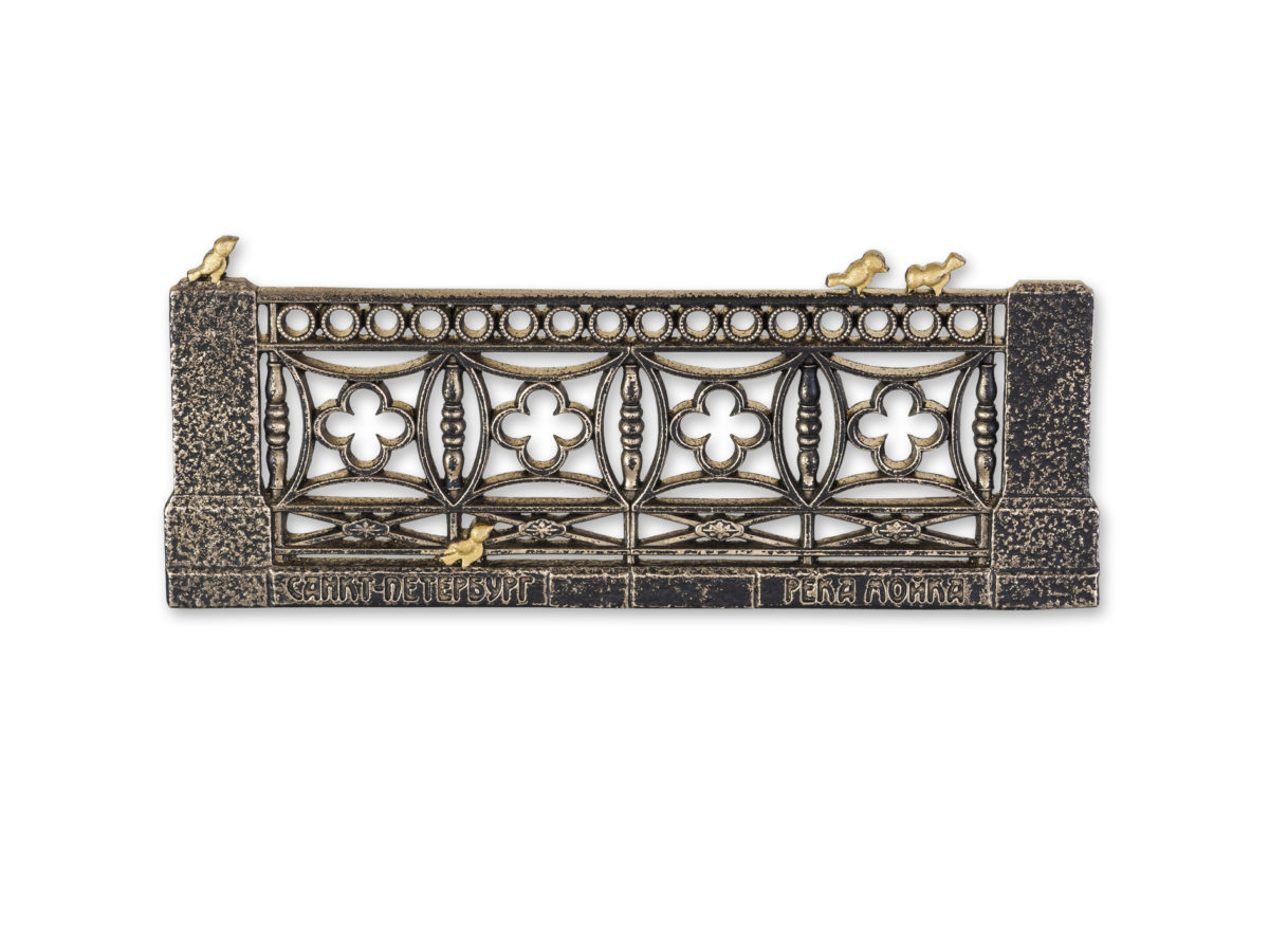 Магнит от FILLART с изображением ограды набережной реки Мойки выполнен из латуни и расписан вручную художниками компании.