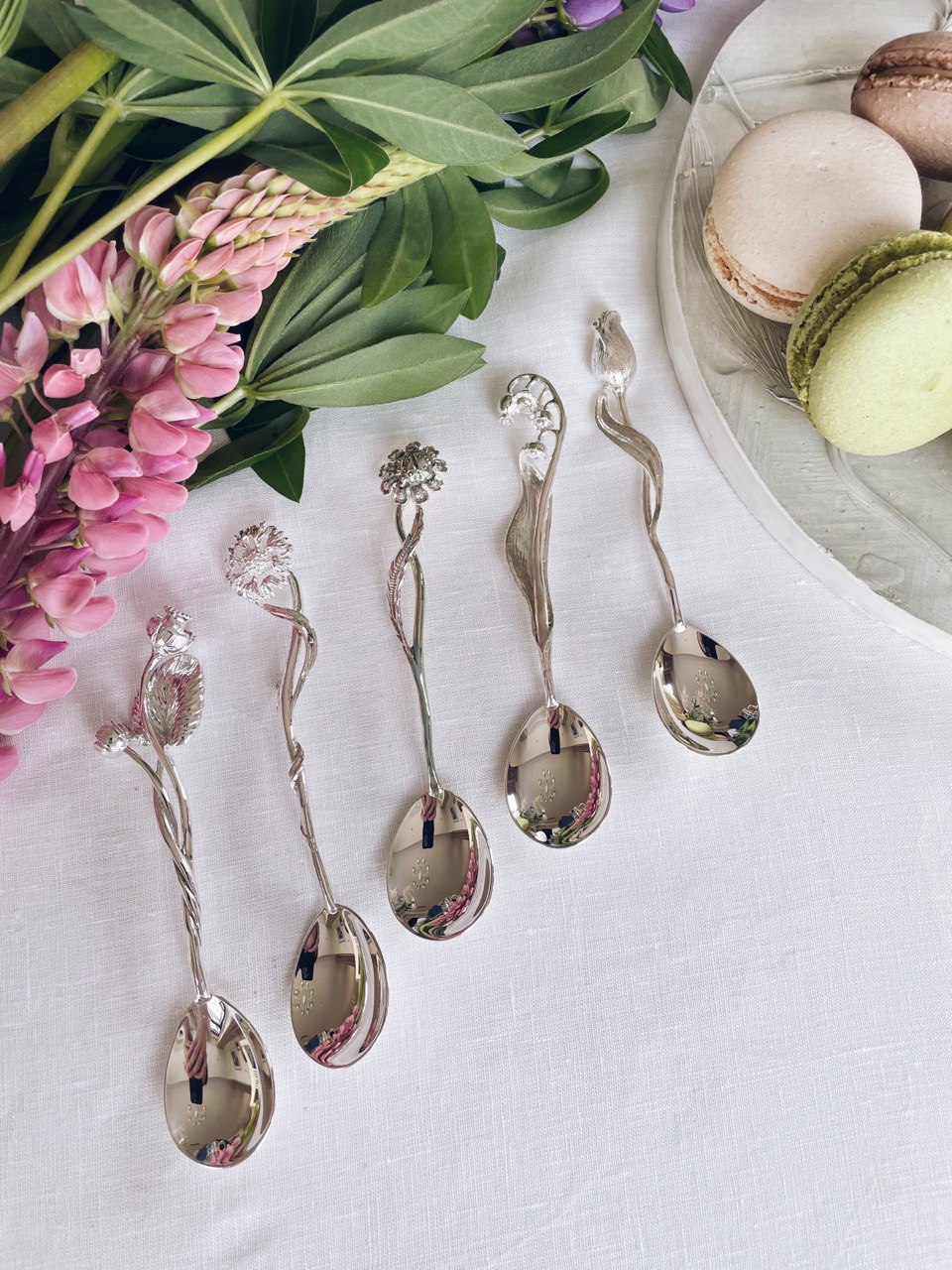 Компания выпускает шесть полноценных и популярных наборов столового серебра, а также большой ассортимент детских чайных ложек и детской серебряной посуды, серебряные подстаканники и другие предметы сервировки стола из серебра 925 пробы.