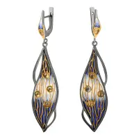 Если это "тема природы" - значит лёгкость , ажурность формы подчёркивается акварельными сочетаниями цветов эмали ("Дерево счастья", "Сумерки"). Если это крупные авангардные изделия, то чёткие геометрические линии окрашены в яркие контрастные тона с элементами витражной эмали ("Фараон", "Пузыри").