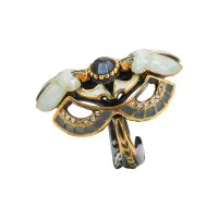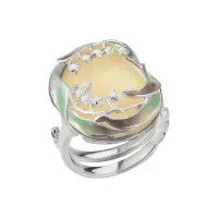 Горячая эмаль с технологией "гильоше" используется в "винтажных" медальонах, в коллекции колец "Арлекино" и в гарнитуре "Хризантемы", где гладкая полированная поверхность с кобальтовой или бирюзовой эмалью соответствует композиции в стиле "Арт - Деко".