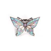 Если это "тема природы" - значит лёгкость , ажурность формы подчёркивается акварельными сочетаниями цветов эмали ("Дерево счастья", "Сумерки"). Если это крупные авангардные изделия, то чёткие геометрические линии окрашены в яркие контрастные тона с элементами витражной эмали ("Фараон", "Пузыри").