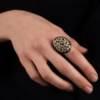 Горячая эмаль с технологией "гильоше" используется в "винтажных" медальонах, в коллекции колец "Арлекино" и в гарнитуре "Хризантемы", где гладкая полированная поверхность с кобальтовой или бирюзовой эмалью соответствует композиции в стиле "Арт - Деко".