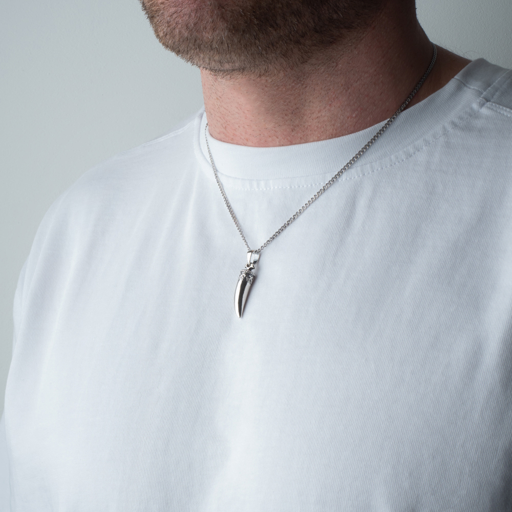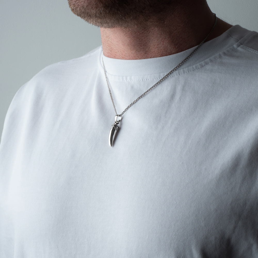 Ищете стильное и символичное украшение для мужчины? Представляем вам подвеску в виде клыка из высококачественного серебра 925‑й пробы — сочетание брутальной эстетики и глубинного сакрального значения.