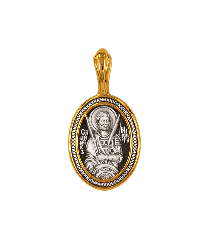 Великомученик Никита Готфский был военачальником при готском языческом короле,который преследовал христиан. В 372 году за свои религиозные убеждения святой был казнён через сожжение. На обороте написана молитва святому великомученику:«О, страстотерпче Никито, испроси нам у Господа веру правую».