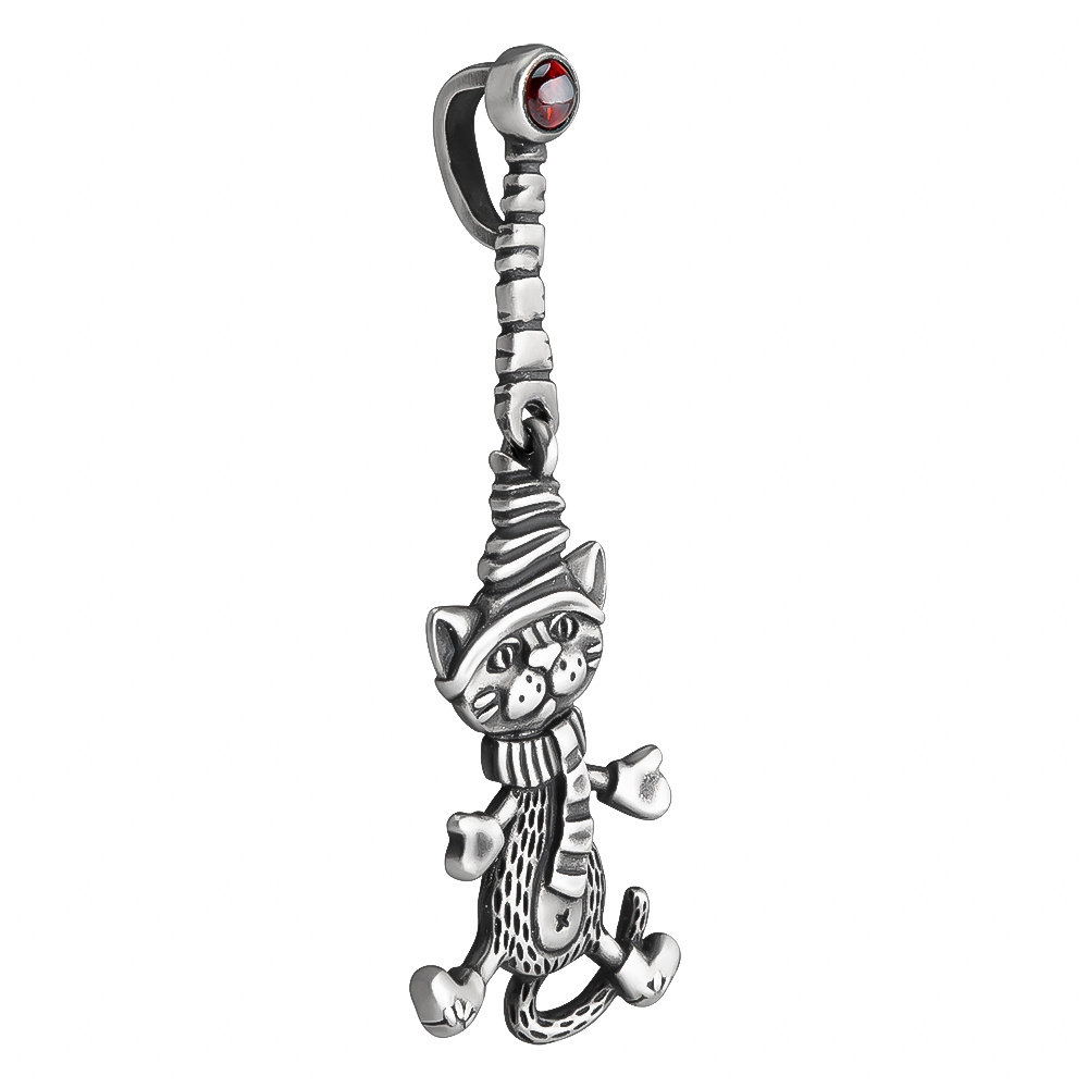 Изысканная серебряная подвеска с изображением кота в новогоднем колпаке и шарфе — идеальный выбор для тех, кто ценит авторские украшения с художественным характером. Этот миниатюрный шедевр сочетает в себе очарование кошачьей грации и праздничное настроение зимнего сезона.