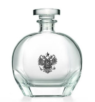 Графин, вмещающий 700 миллилитров, украшен гербом России ручной работы.