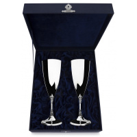 Серебряные фужеры фабрики «АргентА». Фужеры изготовлены из серебра 925 пробы. Антисептические свойства серебра известны людям с древности, оно не теряет свойств, оказывает дезинфицирующее действие, устраняет бактерии, противостоит грибку. Полезно настаивать напитки в такой посуде, чтобы контакт веществ привел к улучшению химического состава содержимого. Необычайно элегантный серебряный бокал "Виноград" на тонкой ножке подойдет для шампанского, вина, сока, воды. Лаконичный дизайн фужера дополнит сервировку стола и сделает ее изысканной и эстетичной. Набор из двух фужеров – элегантный подарок на свадьбу, юбилей, день рожде