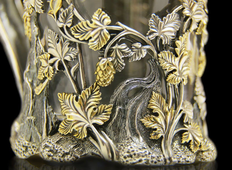Искусная отделка позволила добиться наибольшего соответствия образу, подчеркнуть благородство, особенность и красоту каждой детали изделия. А легкое золочение, оживляя и украшая, придает кружке сказочный оттенок.