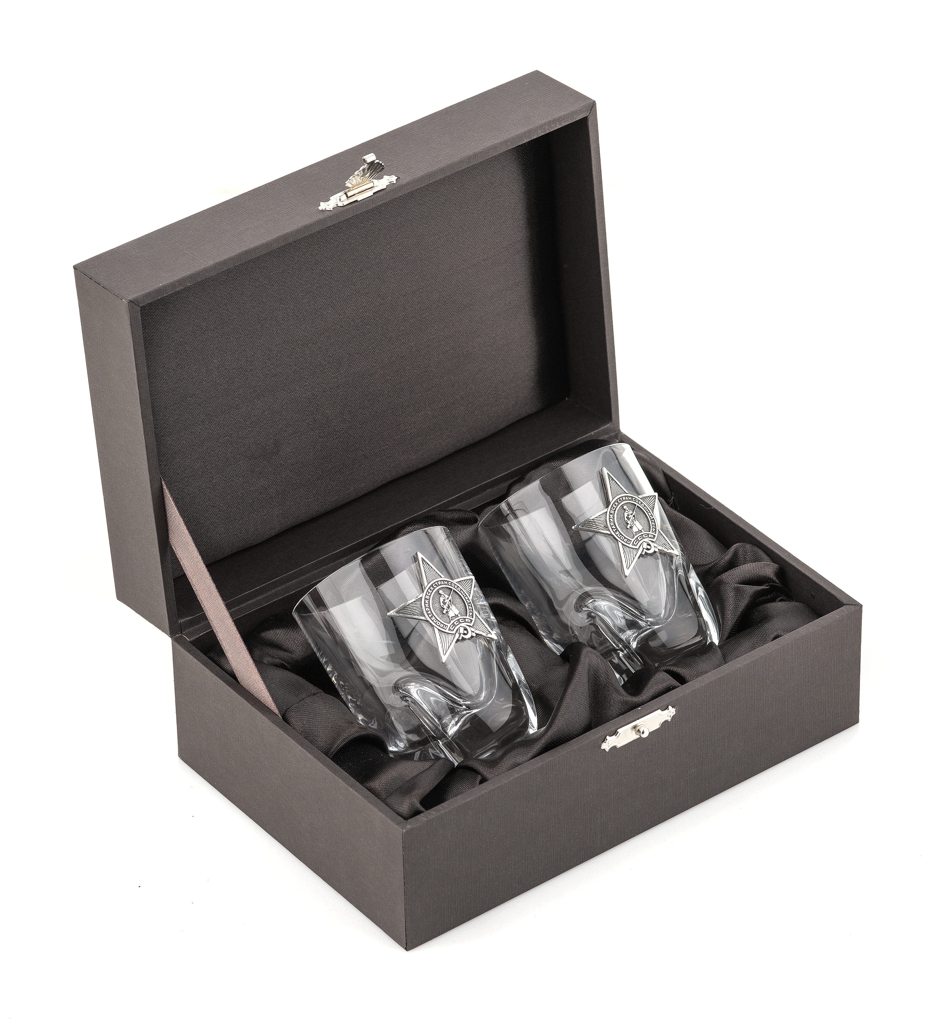 Стопки упакованы в подарочный футляр и транспортную коробку.
