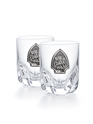 Каждая стопка, вмещающая 60 миллилитров, украшена серебряной плакеткой.