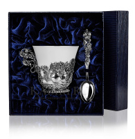 Чайная чашка "Натюрморт" с чернением и с ложкой - это великолепный набор для чаепития. Основание чашки украшают серебряные узоры, выполненные в виде различных растений. Эти узоры придают предметам по-настоящему изысканный вид. Ручку украшают серебряные ягоды земляники, которые великолепно вписываются в общую композицию. В наборе также представлена ложка, рукоятка которой покрыта изображениями на растительную тематику с множеством деталей. Все предметы декорированы чернением. Чайная пара для удобства наших клиентов упакована в синий праздничный футляр. Набор станет восхитительным подарком для настоящих ценителей чайных традиций.