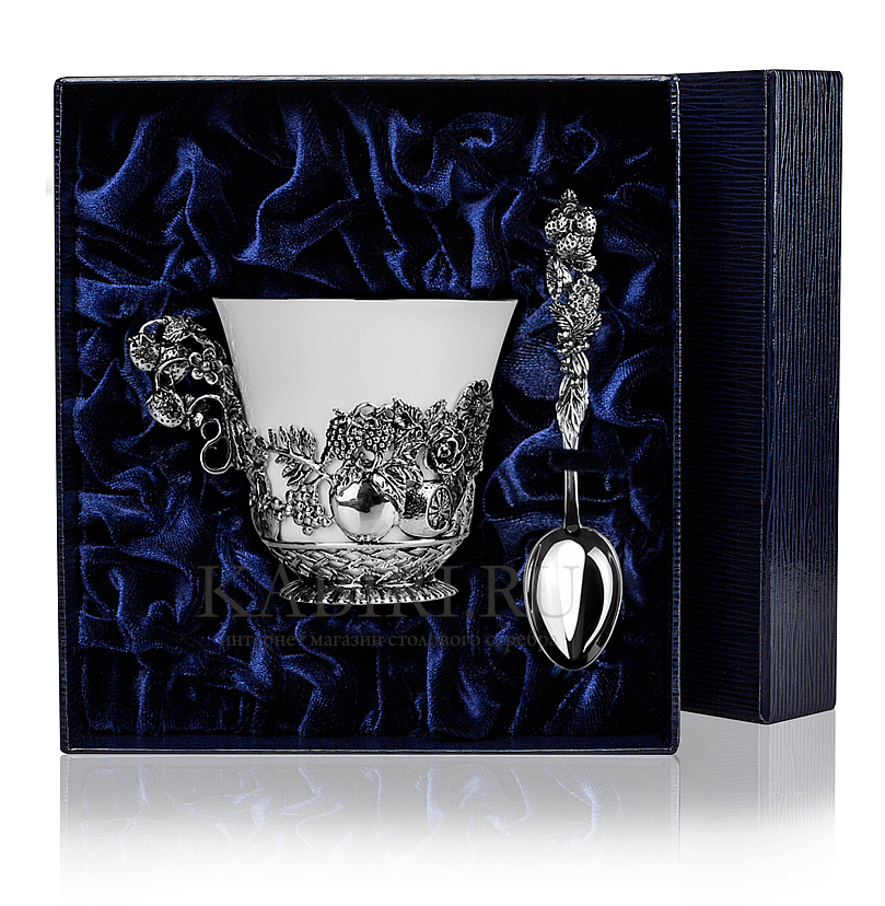 • Чайная чашка с серебром "Натюрморт" с чернением - 1 шт. арт. 786ЧШ03006 Высота: 7 см. Объём: 150 мл. Диаметр: 8 см
