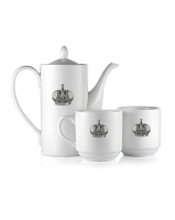 Парадный набор ручной работы состоит из чайника и двух чашек английского фарфора украшенных серебром. Сет поставляется в подарочном футляре и транспортной коробке.