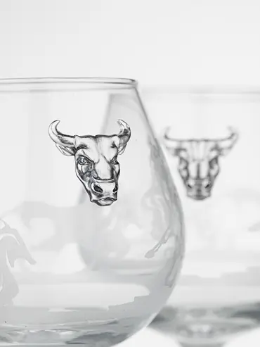 Каждый фужер, вмещающий 250 миллилитров, украшен плакеткой ручной работы.