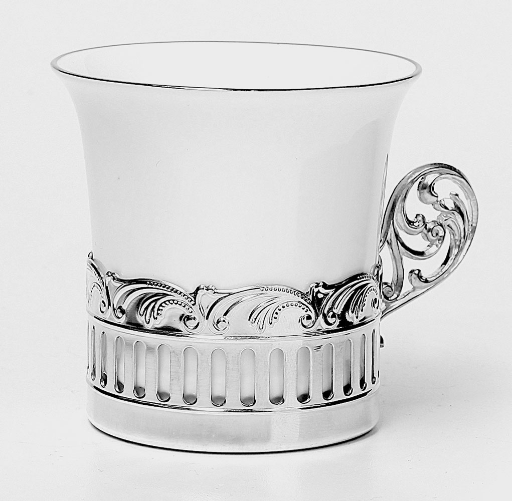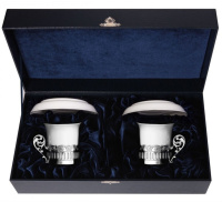 • Кофейные чашки из серебра "Богема" - 2 шт , диаметр - 5.5 см., диаметр с ручкой - 7 см., высота - 5.5 см., объем - 60 мл