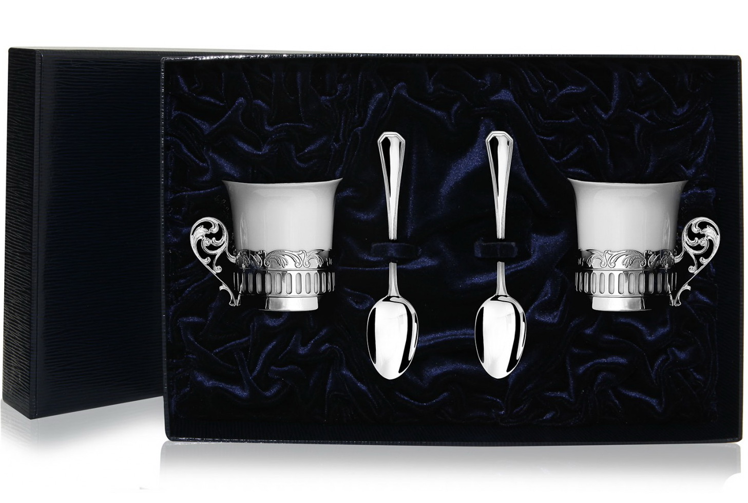 • Кофейные чашки из серебра "Богема" - 2 шт. арт. 534ЧШ07001 Высота: 5,5 см. Объём: 70 мл. Диаметр: 5,5 см