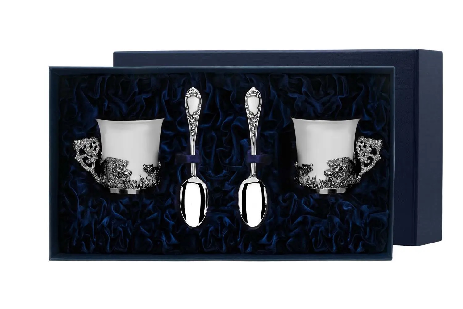 • Кофейные чашки из серебра "Кабан" - 2 шт. Высота: 5,5 см. Объём: 70 мл. Диаметр: 5,5 см