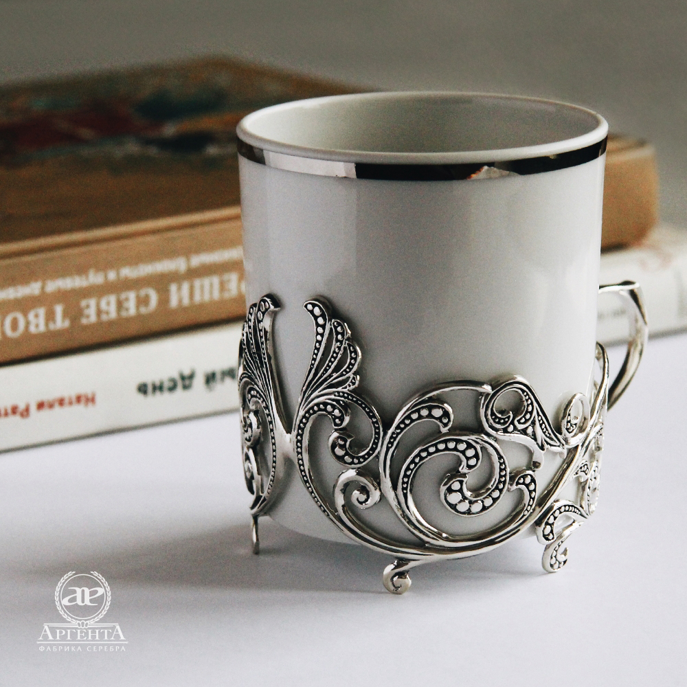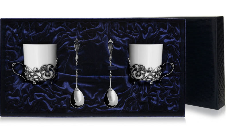 • Кофейные чашки с серебром "Витые" - 2 шт, диаметр - 7.2 см., диаметр с ручкой - 9.7 см., высота - 8.7 см., объем - 200 мл