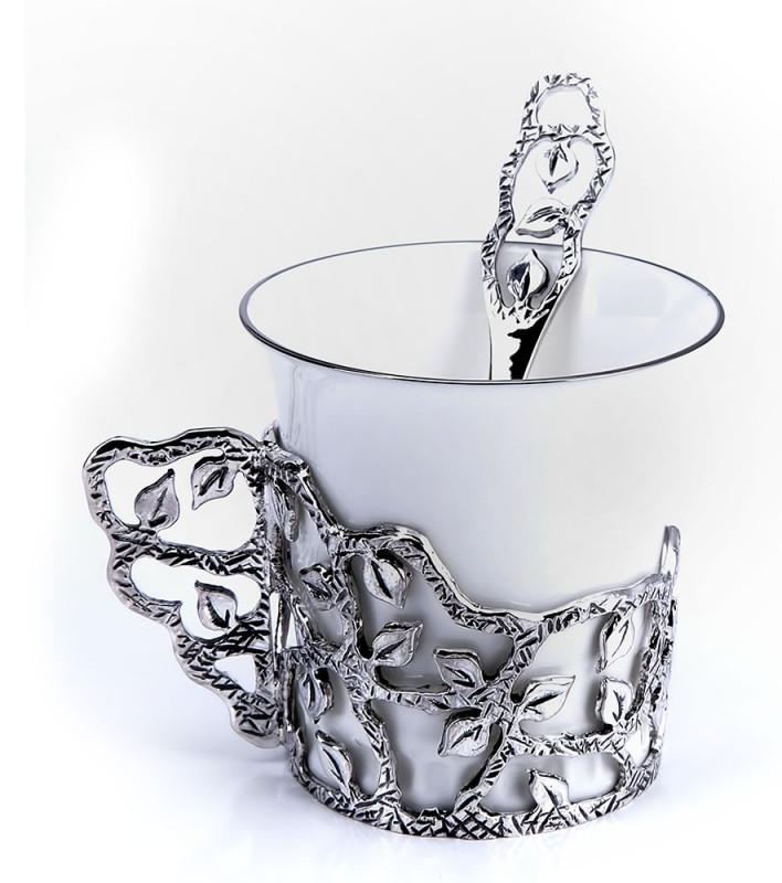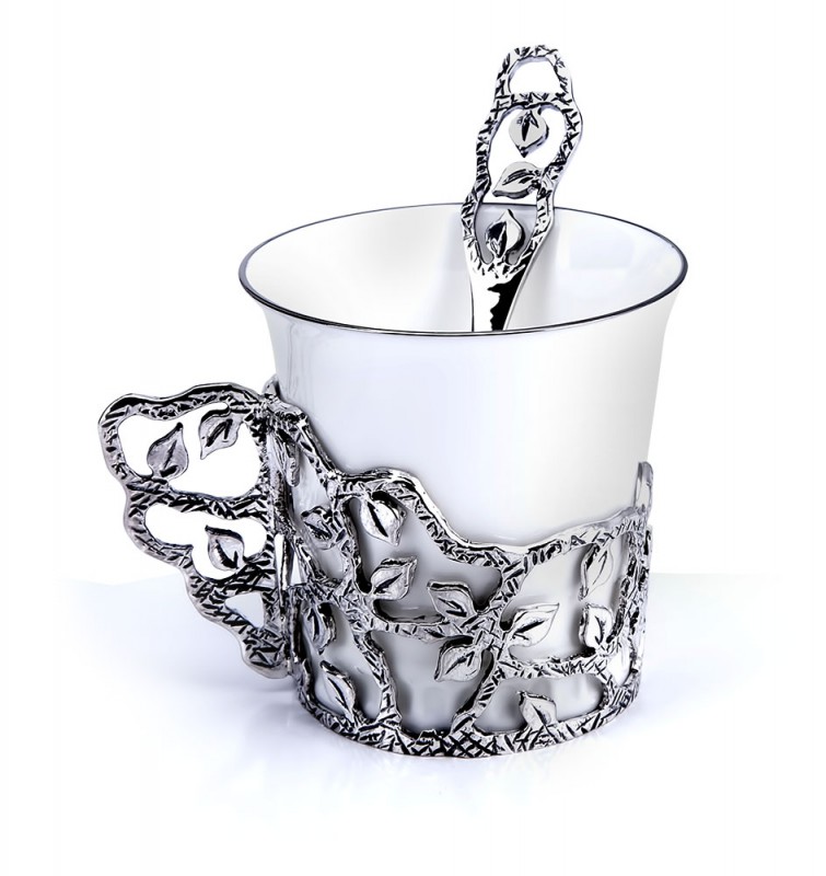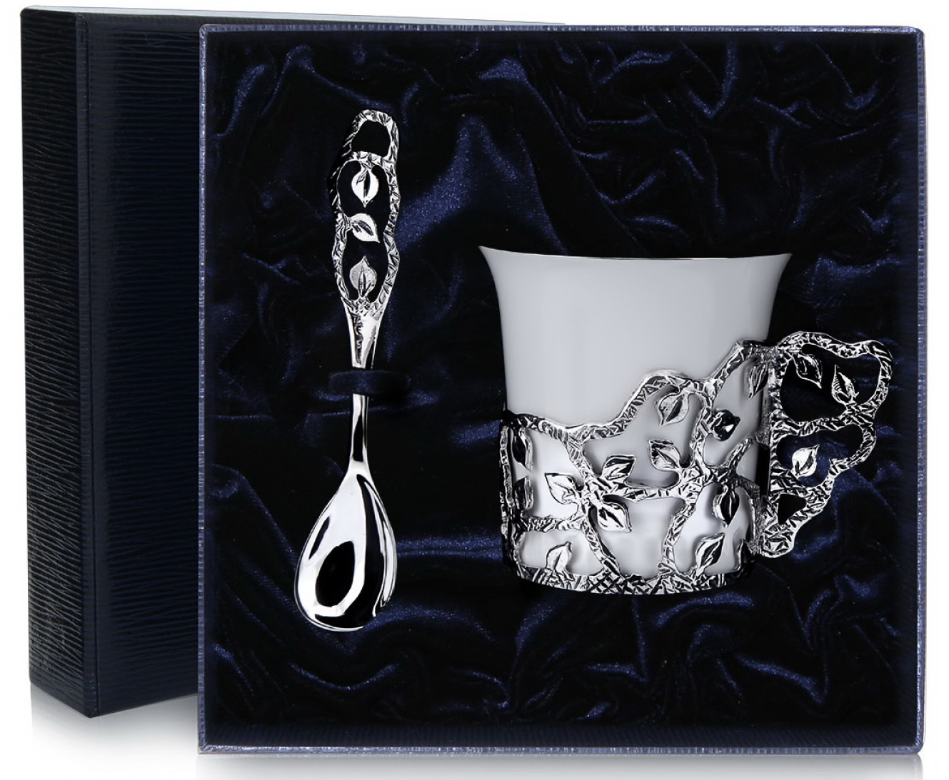 • Кофейная чашка с серебром "Листопад" с чернением - 1 шт. арт. 606ЧШ07001 Высота: 5,5 см. Объём: 70 мл. Диаметр: 5,5 см