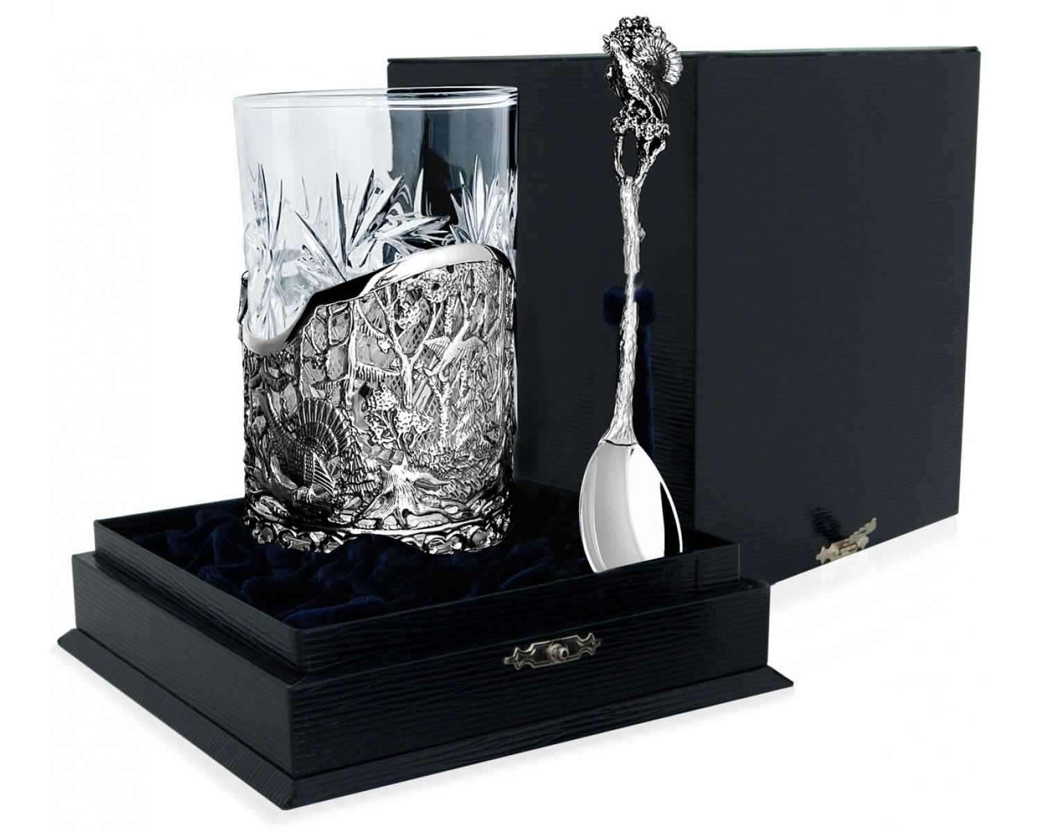 Подстаканник "Глухариная охота" выполнен в технике художественного литья, изготовлена вручную на Фабрике серебра "АргентА" по авторской модели мастера ювелира. Эксклюзивный дизайн подтверждается индивидуальным клеймом мастера паспортом изделия.