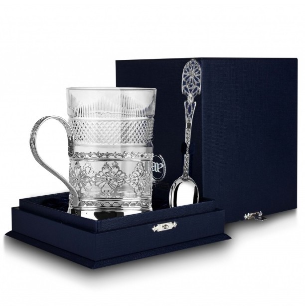 Серебряный подстаканник "Ажур" литой с серебряной ложкой "Скань" - чудесный подарок для родных и коллег. Оба предмета искусно выполнены из серебра 925 пробы в технике, напоминающей кружево, и упакованы в футляр насыщенного синего цвета. В комплект входит стакан, выполненный из хресталя высшего качества.