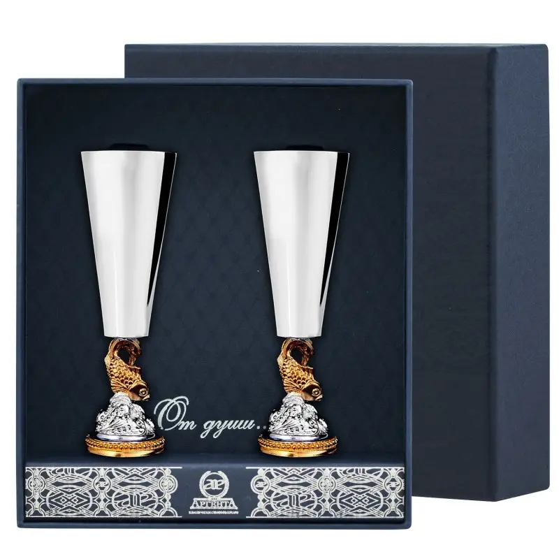 • Рюмка "Золотая рыбка" с позолотой высота 8,5см, объем 20мл. - 2 шт. арт. 577РМ00002