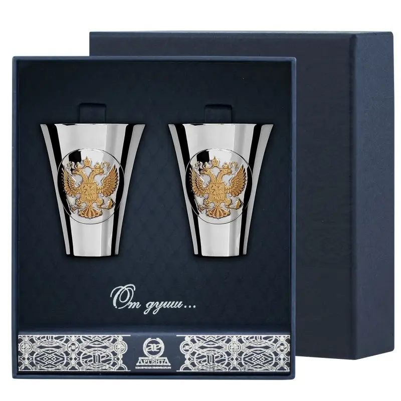 Набор стопок "Герб" с позолотой может послужить памятным подарком коллеге по госслужбе, военнослужащему, руководителю компании, педагогу, завучу или директору школы, и любому, кто любит нашу Отчизну.