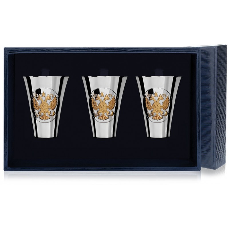 • Стопка "Герб" с позолотой - 3 шт. арт. 285СТ00002, высота - 5.6 см., диаметр - 4 см., объем - 35 мл.