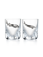 Каждая стопка, вмещающая 60 миллилитров, украшена плакеткой.