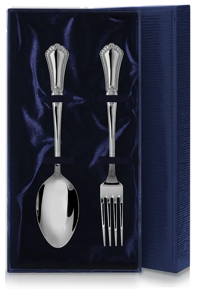 Серебряный набор "Фаворит" привлечёт Вас изысканным узором на рукоятках столовых приборов. Внутри упаковки располагаются два предмета - вилка и столовая ложка из серебра 925 пробы.
