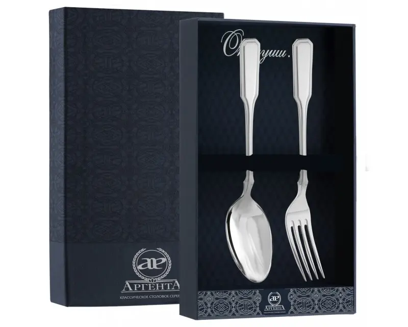 • Серебряная столовая вилка "Русская" - 1 шт. Длина - 20 см., ширина - 2.5 см.