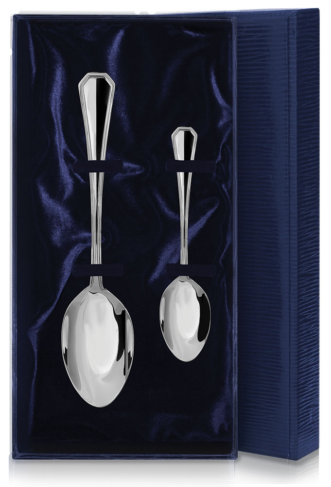 Серебряный набор столовый "Элегант" состоит из столовой и чайной ложки с узором по краям рукояток. Приборы изготовлены из серебра 925 пробы.