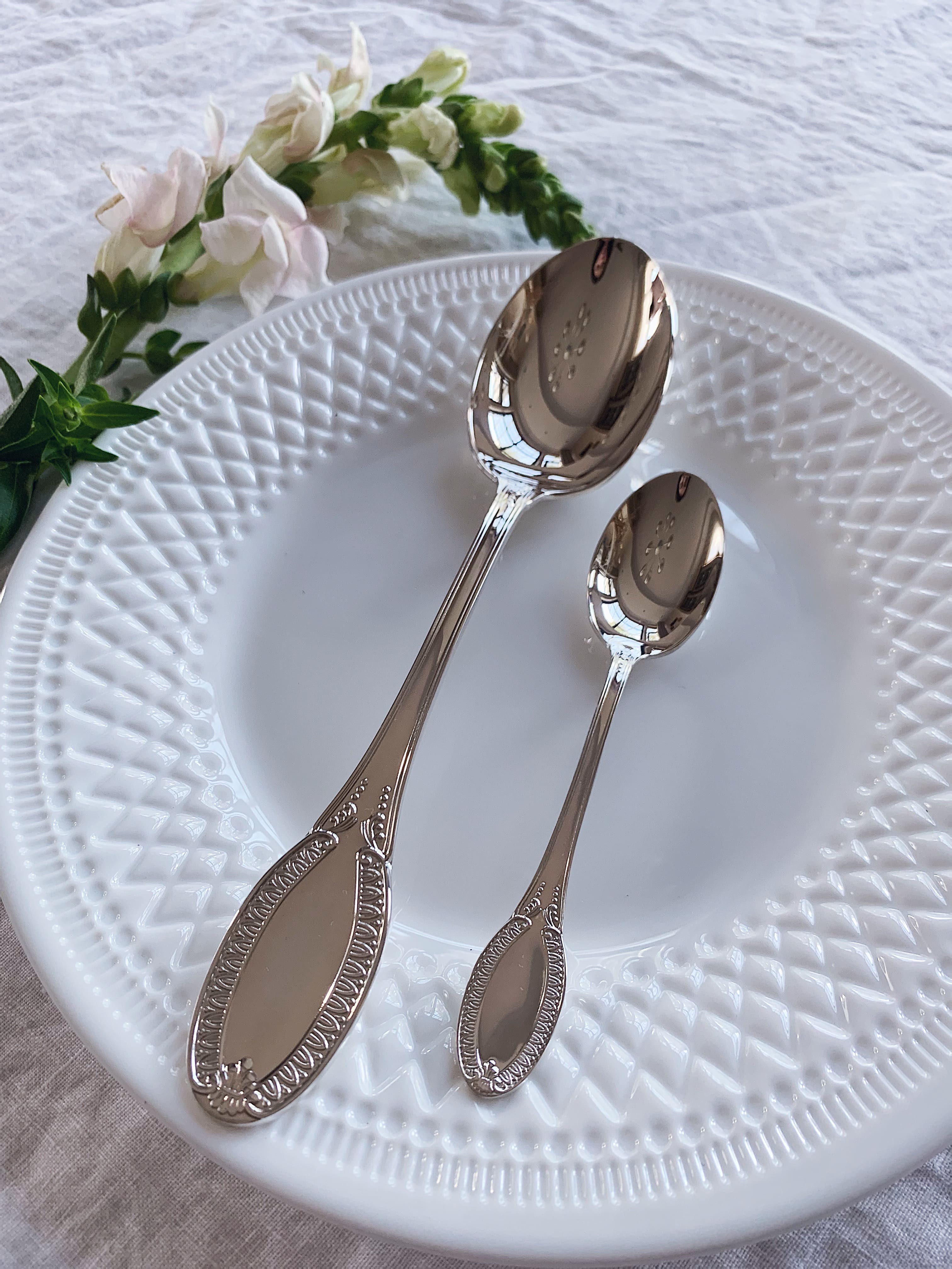 Чайная и столовая ложки сделаны из серебра пробы номер 925. Комплект станет потрясающим подарком для дорогих сердцу родственников или друзей. Узоры, выполненные в классическом стиле, дополняют изысканный внешний вид ложек.