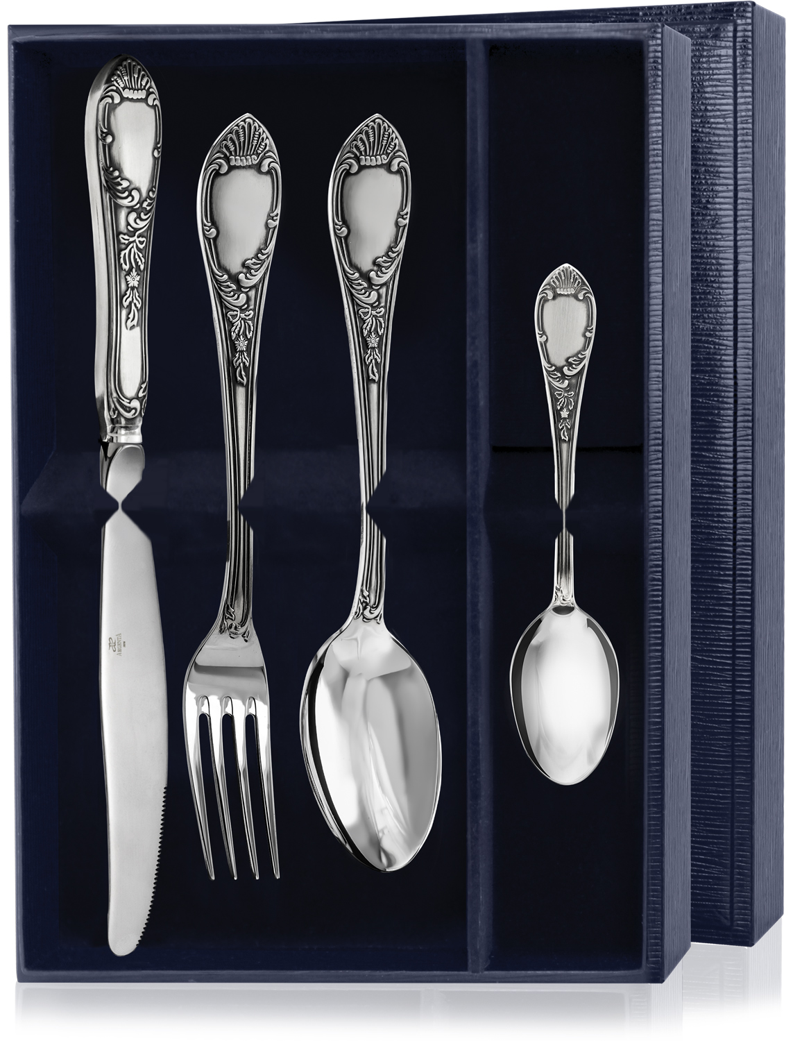 Набор столового серебра «Эгоист-Престиж» - это классический комплект столового серебра с чернением на одну персону.