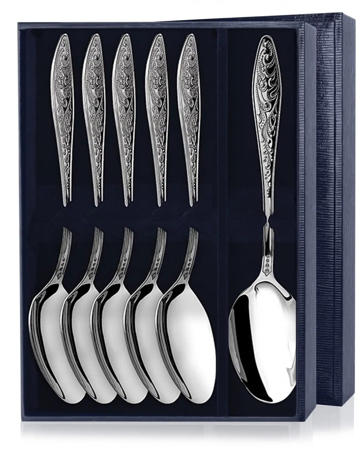 1. Ложка десертная "Морозко" арт. 040ЛЖ02001 - 6шт. (средний вес 6 х 43 гр. = 258 гр.) Длина: 170 мм. Ширина: 32 мм.