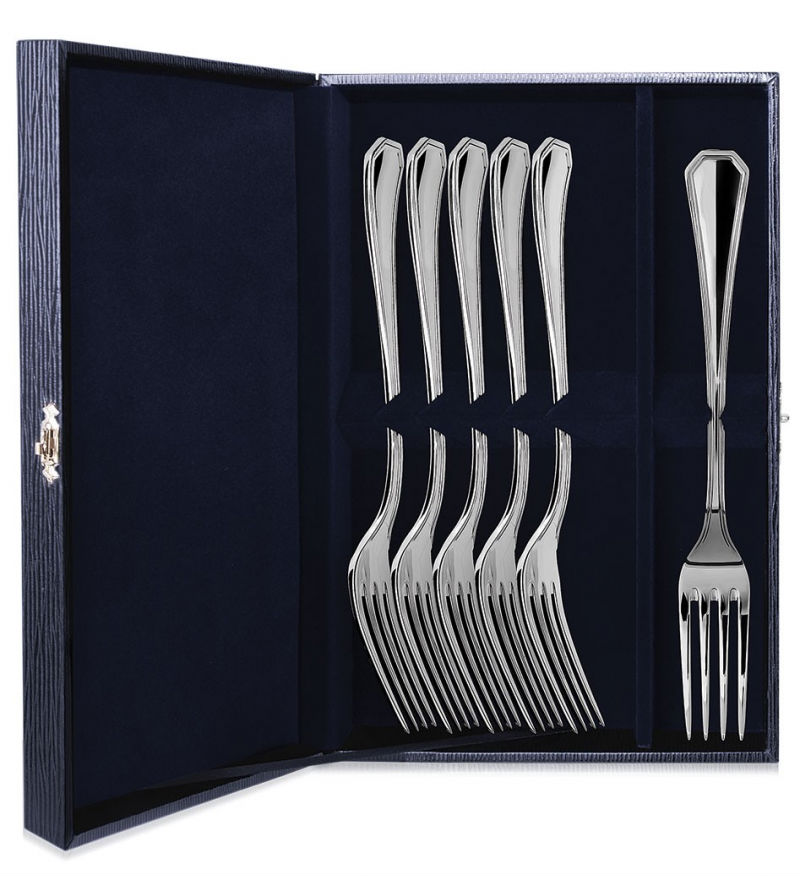 Серебряный набор "Элегант" - это 6 столовых вилок, покрытых изысканными классическими узорами на рукоятках, благодаря которым столовое серебро приобретает дорогой и аристократический вид.