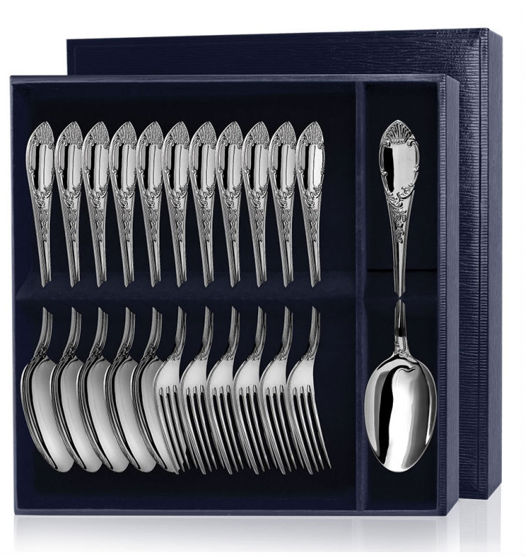 12 предметов на 6 персон упакованы в футляр с гребёнкой-разделителем и могут послужить незабываемым подарком на памятную дату или празднование.