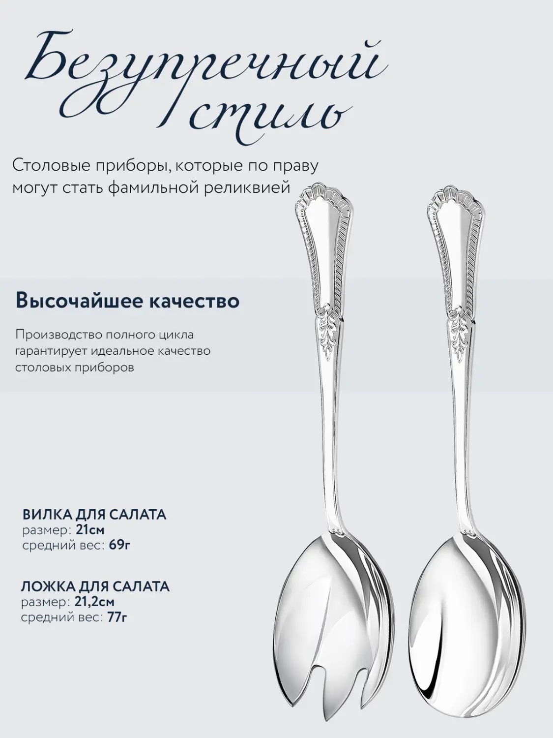 Коллекция классического столового серебра - это союз многовековых традиций и современных технологий, эстетичных форм и эргономичного дизайна. Все предметы коллекции созданы, чтобы стать заветными семейными ценностями и передаваться из поколения в поколения. Стильные и полезные, серебряные столовые приборы помогают победить негативное воздействие внешней среды и укрепляют иммунитет всей семьи день за днём. Классическая коллекция состоит из нескольких линий классического столового серебра: Фаворит, Император, Престиж, Визит, Русский, Единство, Элегант, Морозко, Фамильный. В каждой линии предусмотрены разные варианты для покупки. Вы можете приобрести любое изделие отдельно или набор на одну или несколько персон. Для больших семейств и крупных застолий - наборы из 24, 48, 51 и более предметов. Все изделия коллекции Classic являются неотъемлемой частью сервировки как праздничного, так и повседневного стола.