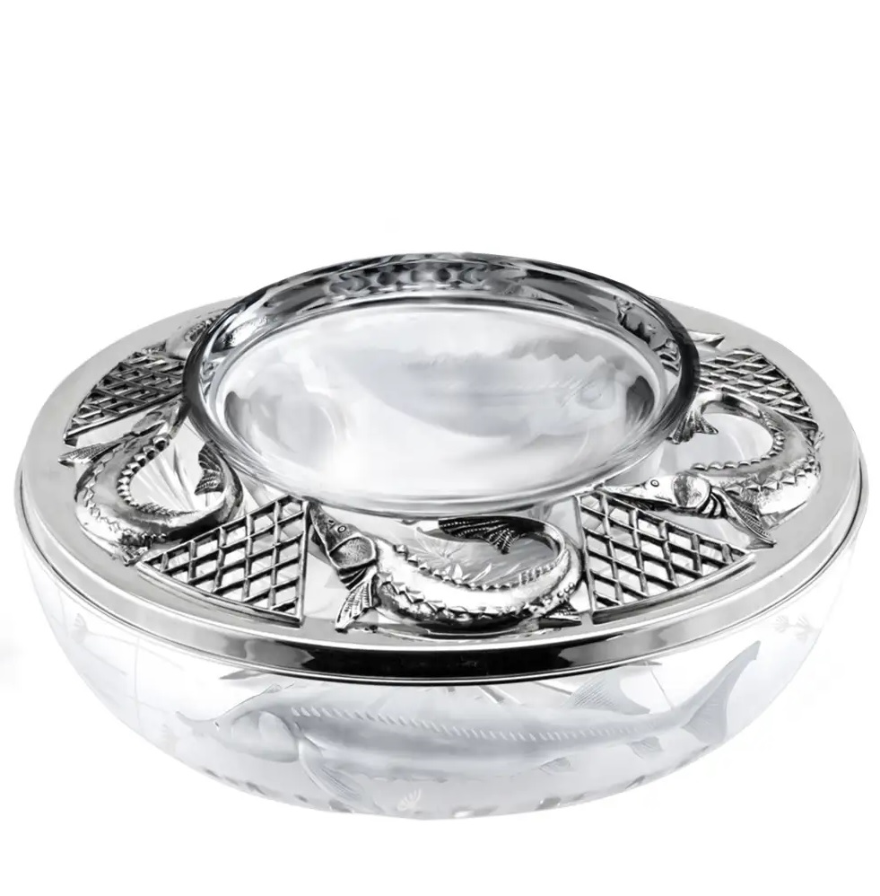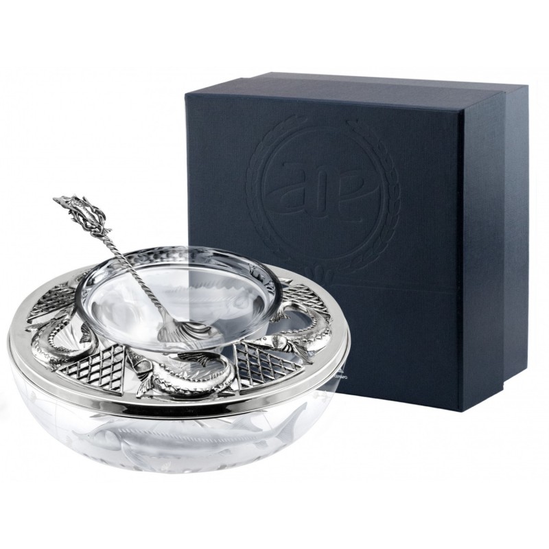 • Серебряная икорница "Осетр" с чернением (арт.915ИК12006)