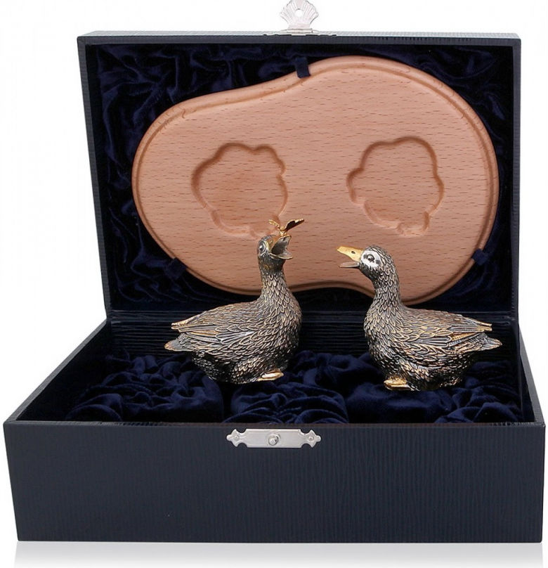 • Серебряная солонка "Утка" арт. 511СЛ00011 с чернением и позолотой, высота - 6.0 см.,