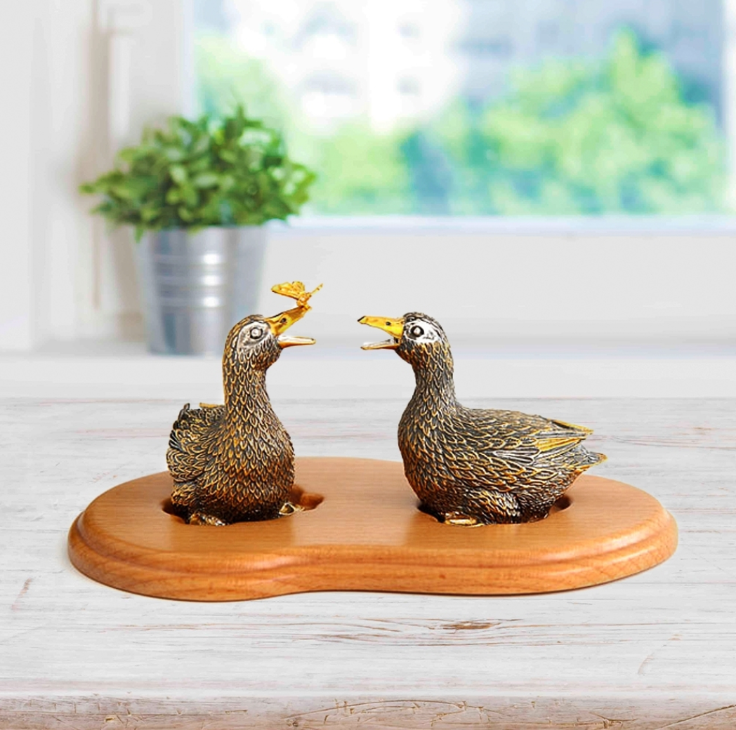 • Серебряная перечница "Утка" арт. 512ПЧ00011 с чернением и позолотой, высота - 7.0 см