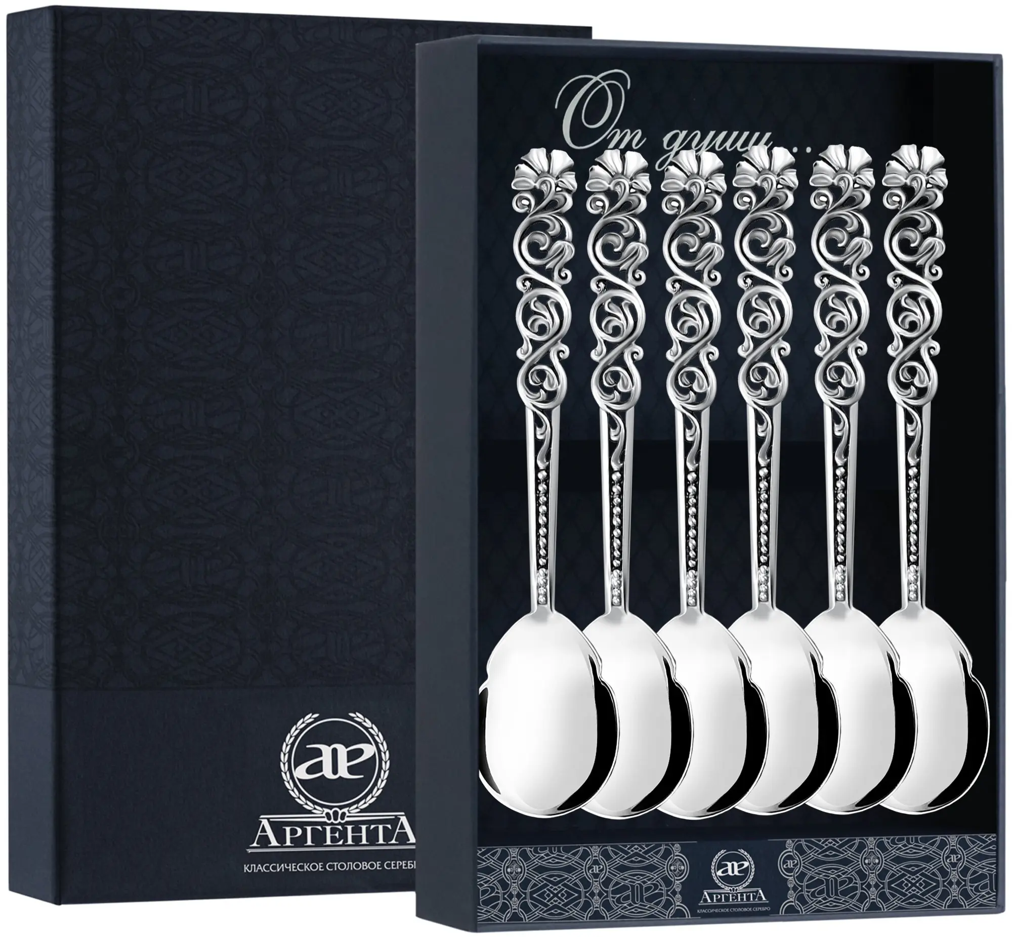 Серебряный набор "Подарочный" - это 6 чайных ложек, которые помогут украсить чайный стол на шесть персон.