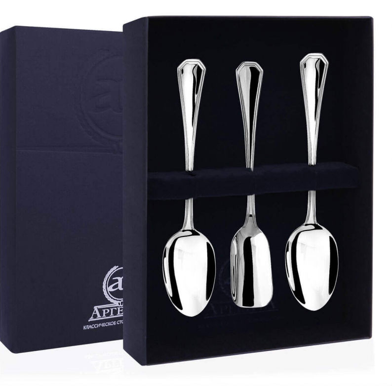 Материал, из которого сделаны ложки - серебро 925 пробы. Рукоятки приборов декорированы классическими тонкими узорами, которые придают изящный и аристократичный внешний вид ложкам.
