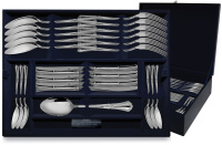 Серебряный набор столовый "Фаворит" на 12 человек состоит из прибоов, выполненных на известной фабрике "Аргента" из серебра 925 пробы. Данный набор станет потрясающим подарком для семьи или бизнес коллег. Внутри футляра расположены 48 предметов столового серебра - по дюжине вилок, ножей, также столовых и чайных ложек.
