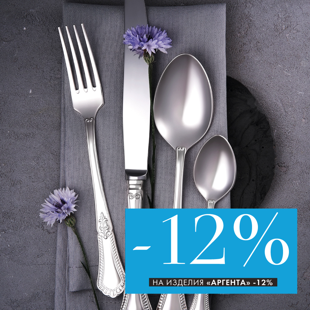 С 3 по 12 февраля у вас появляется замечательная возможность приобрести столовое серебро «Аргента» со скидкой -12%.