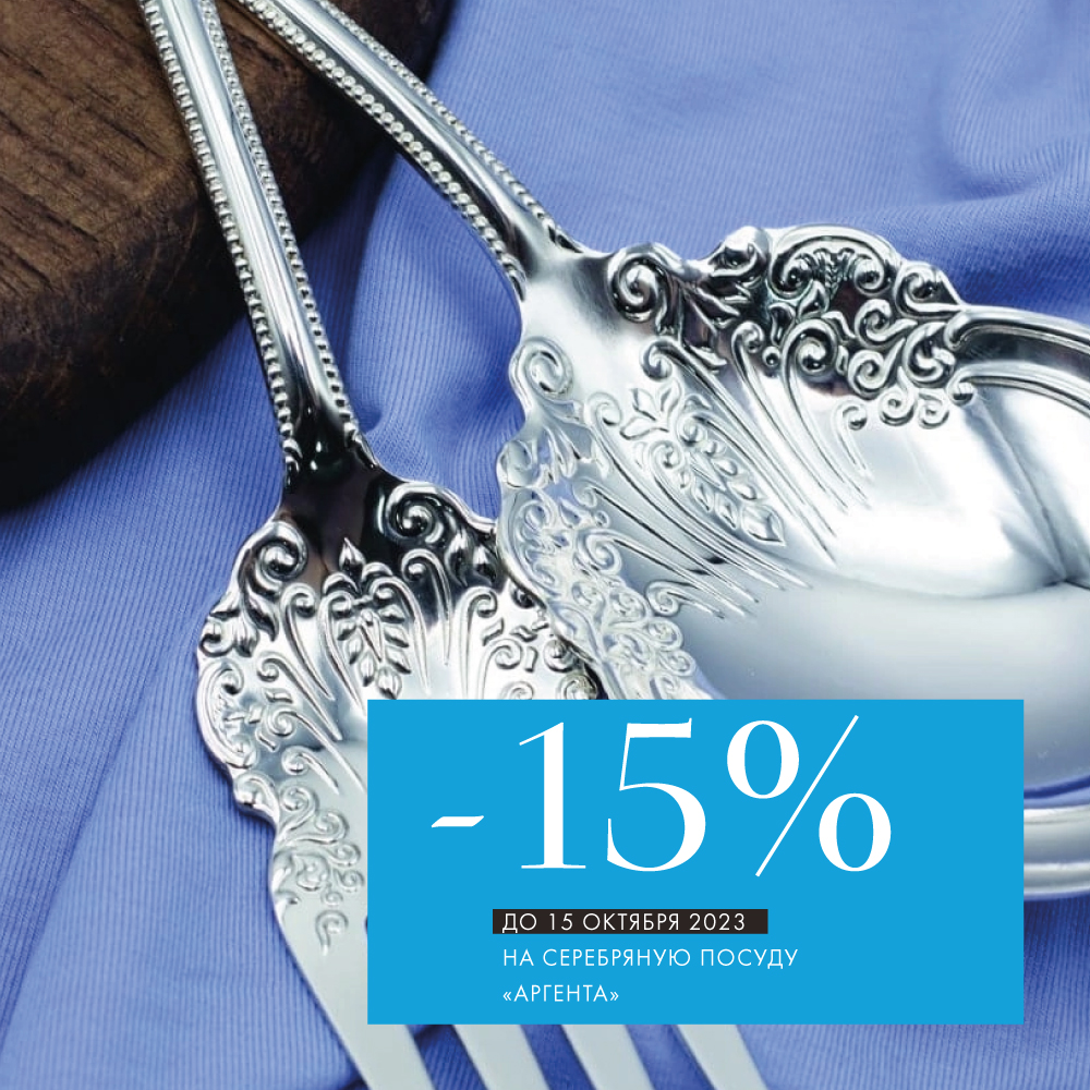 Скидка -15% на коллекцию столового серебра «Аргента» ждет вас до 15 октября. Создайте незабываемую атмосферу для себя и своих близких, дополнив стол изысканными акцентами.